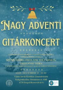 « Összes Események Ez az esemény elmúlt. Nagy Adventi Gitárkoncert december 17, 2025 @ 19:00 - 20:00 « Kodály Zoltán emlékére rendezett hangverseny Karácsonyi koncert a Szegedi Dómban » Hozzáadom a naptáramhoz Google Naptár iCalendar Outlook 365 Outlook Live Részletek Dátum: december 17, 2025 Időpont: 19:00 - 20:00 Szervező Vántus István Katolikus Zeneművészeti Szakgimnázium Tekintse meg a Szervező weboldalát Helyszín Szegedi Konzervatórium Roosevelt tér 6. Szeged, 6720 Hungary + Google Térkép Telefon +36/62/641200 Tekintse meg a Helyszín weboldalát